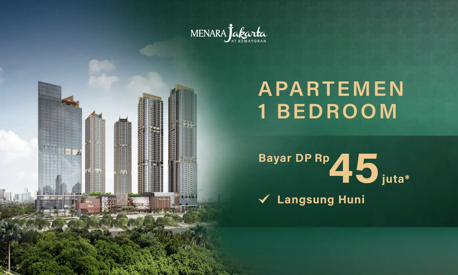 Menara Jakarta, which is located in the front of JIEXPO Kemayoran, has 6 super magnificent towers, 1 Conho (Condo & Hotel), 1 Condo Tower, 1 Office Tower and 3 Suite Towers. The Menara Jakarta is not only an icon in the Kemayoran area but also an icon in Jakarta because the Menara Jakarta will be the tallest tower in the Kemayoran area (280 m2), besides that the Menara Jakarta has a very complete concept (One Stop Living Concept), because apart from Making Suites and Condos to five-star hotel standards, Superblock Menara Jakarta has the only mall in the Kemayoran area, an international scale hotel and office space.